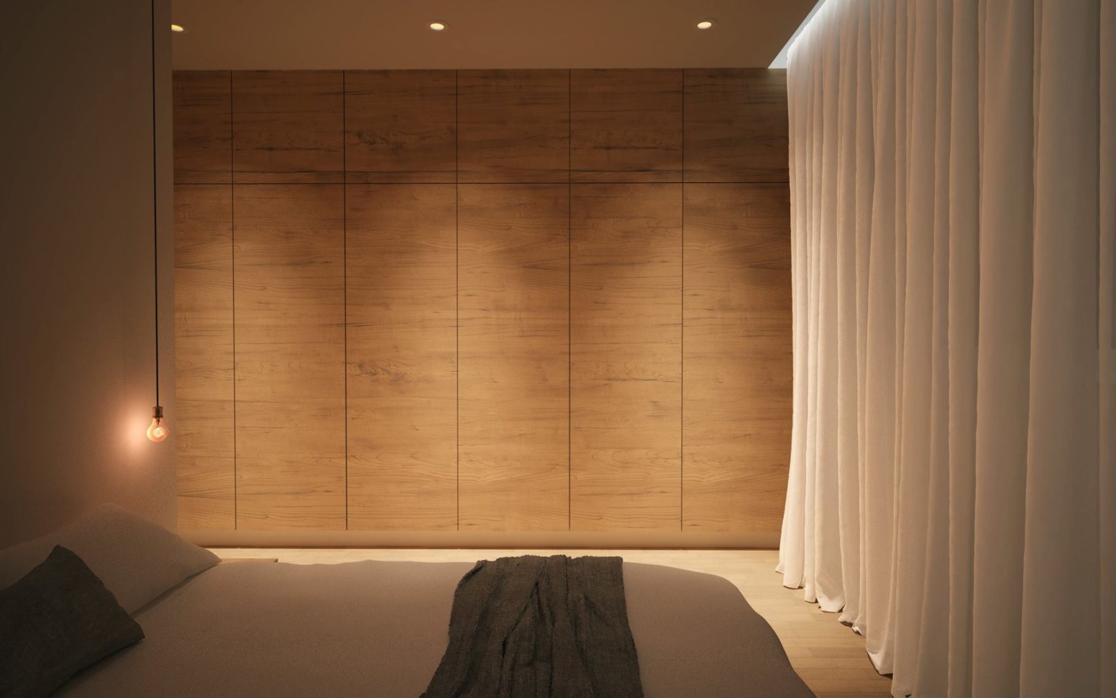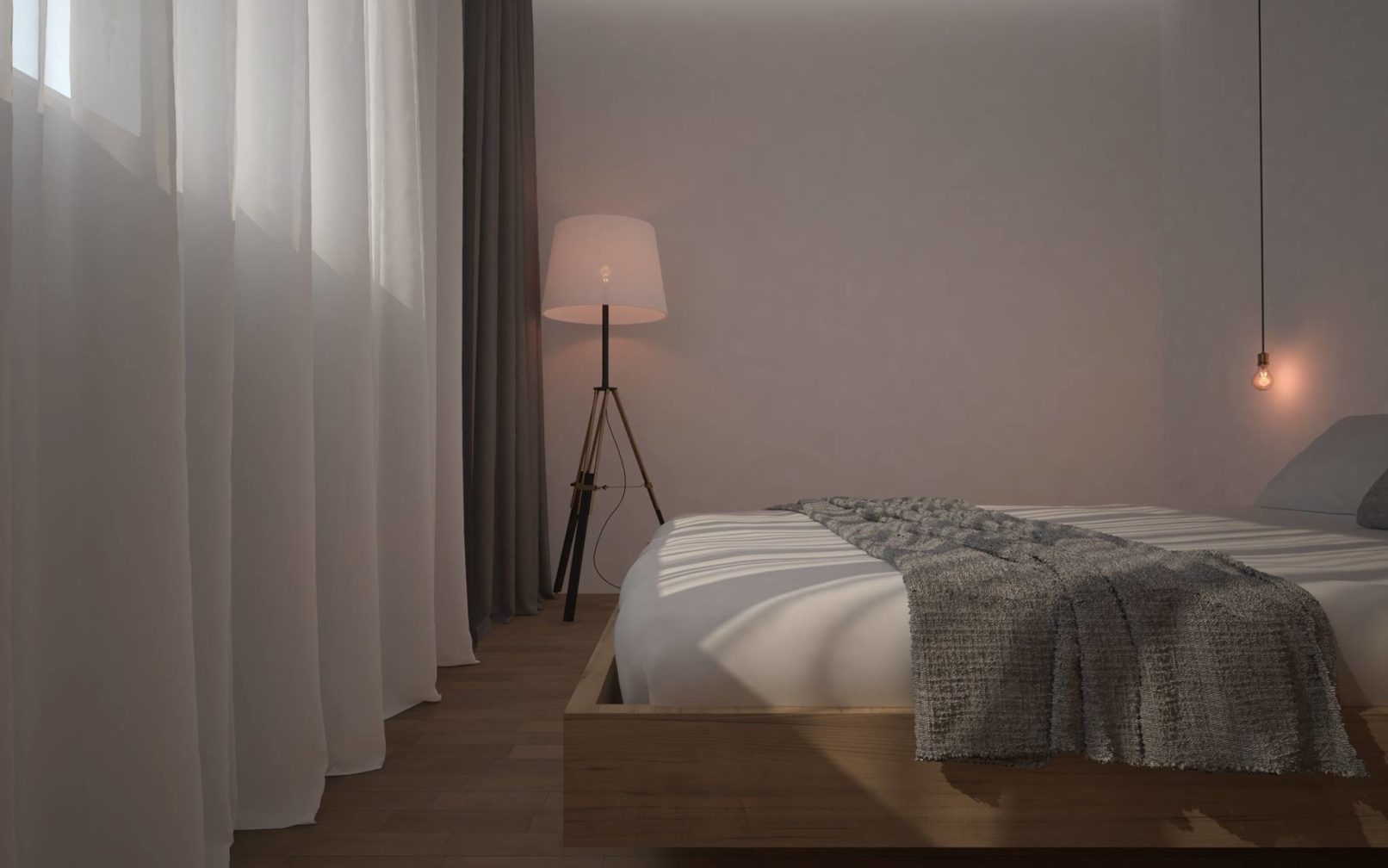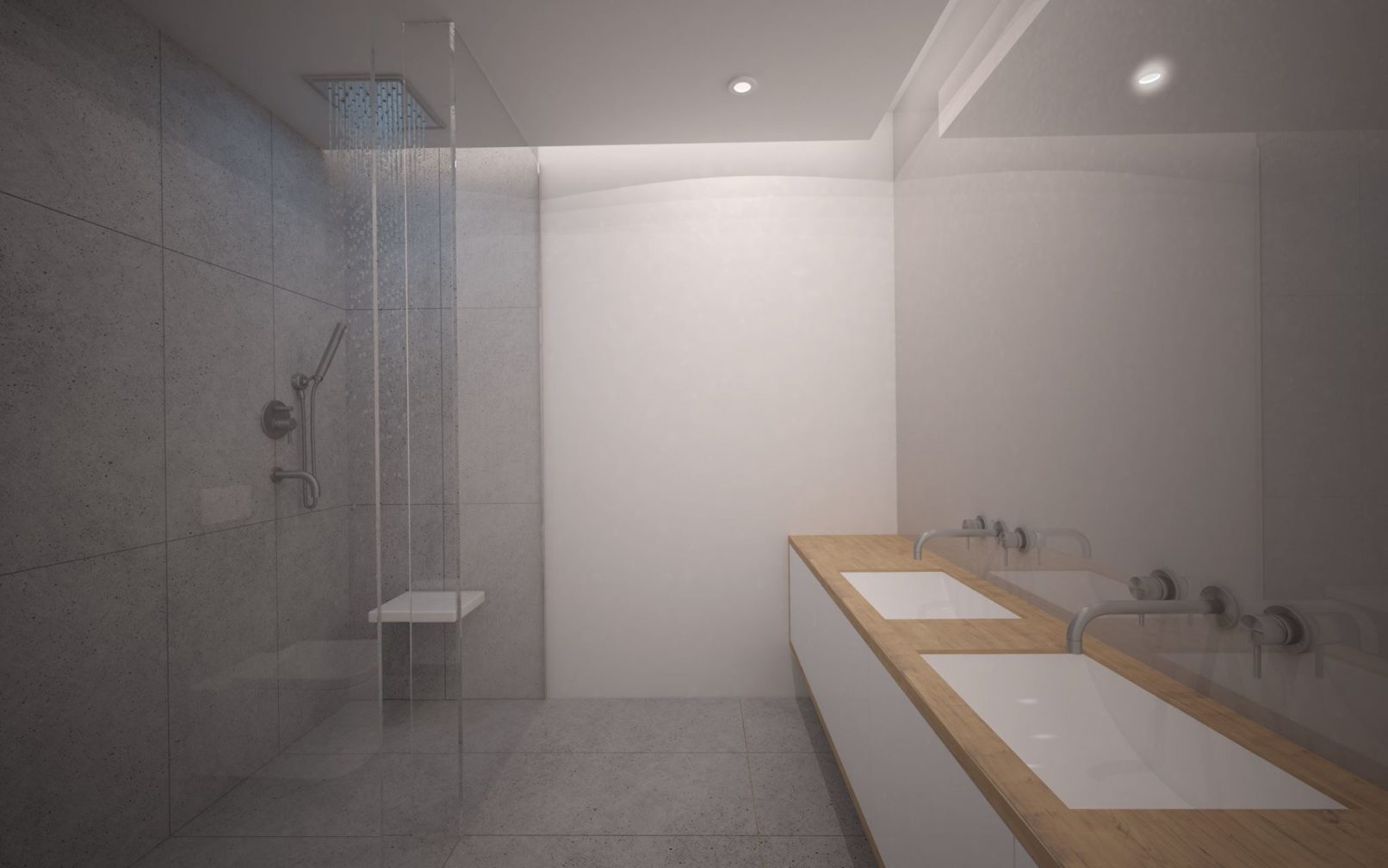 Założeniem projektowym było stworzenie nowoczesnego i minimalistycznego mieszkania, o jak najmniejszej ilości mebli wolnostojących. Mieszkanie ma odpowiadać potrzebą trzyosobowej rodziny. Ważnym założeniem projektowym było wytworzenie dwóch przestrzeni. Prywatnej, dostępnej dla domowników i dziennej. Wielkim atutem były przeszklenia każdego z pokoi, które prowadzą na taras. W mieszkaniu dominują trzy kolory, które dopełniają się wzajemnie i tworzą wspólnie harmonie wnętrza. Wysoka zabudowa szafowa jest idealnym odpowiednikiem na potrzeby rodziny. Ważnym elementem mieszkania było oświetlenie, które zostało przewidziane w trzech wariantach.