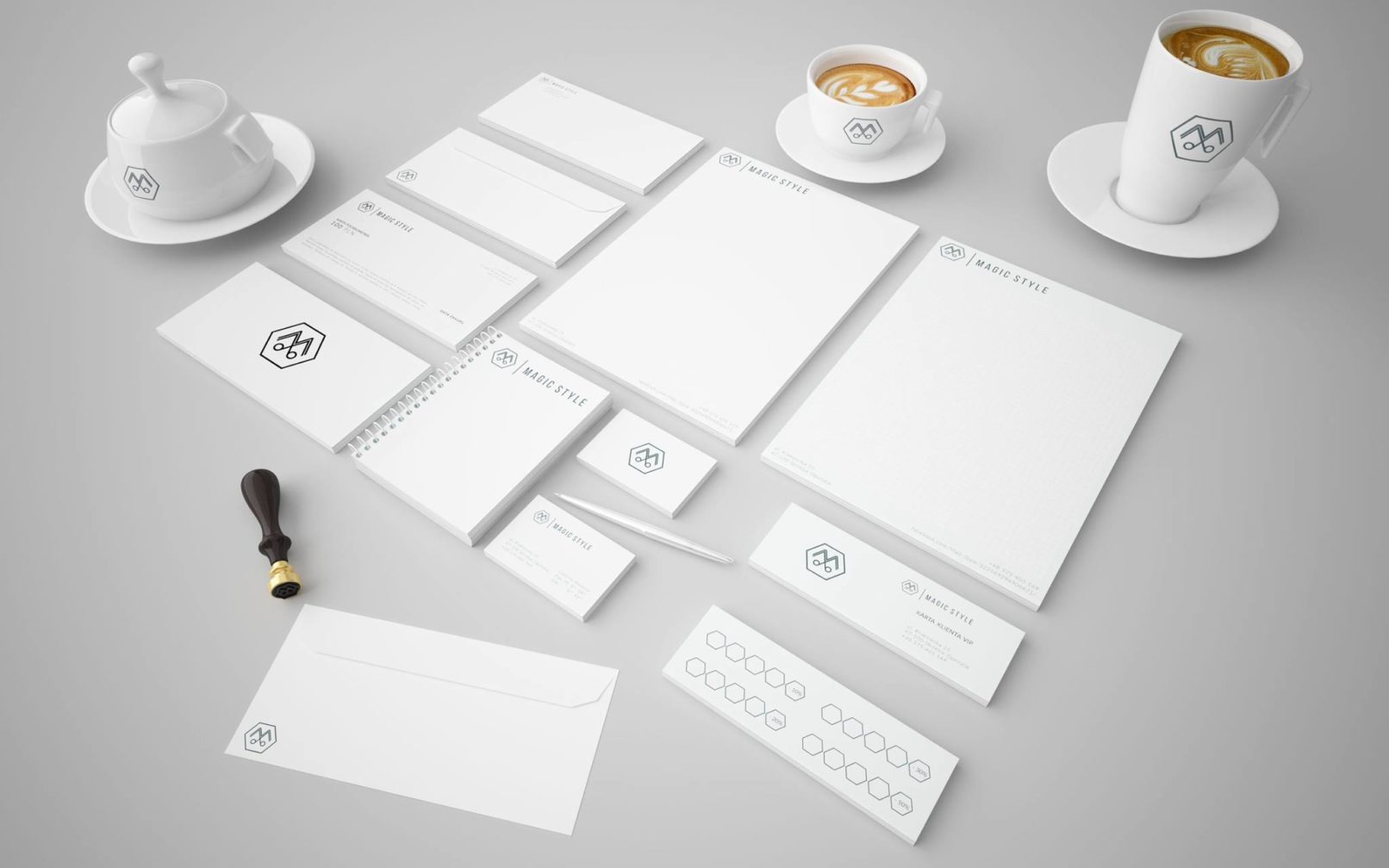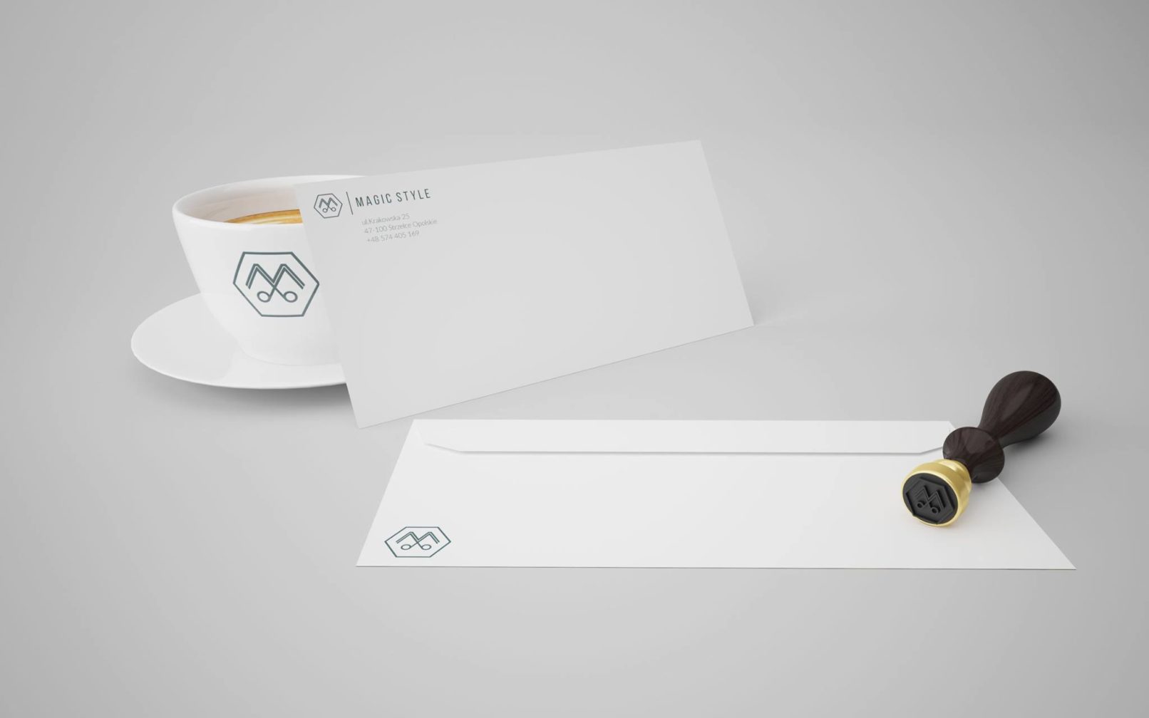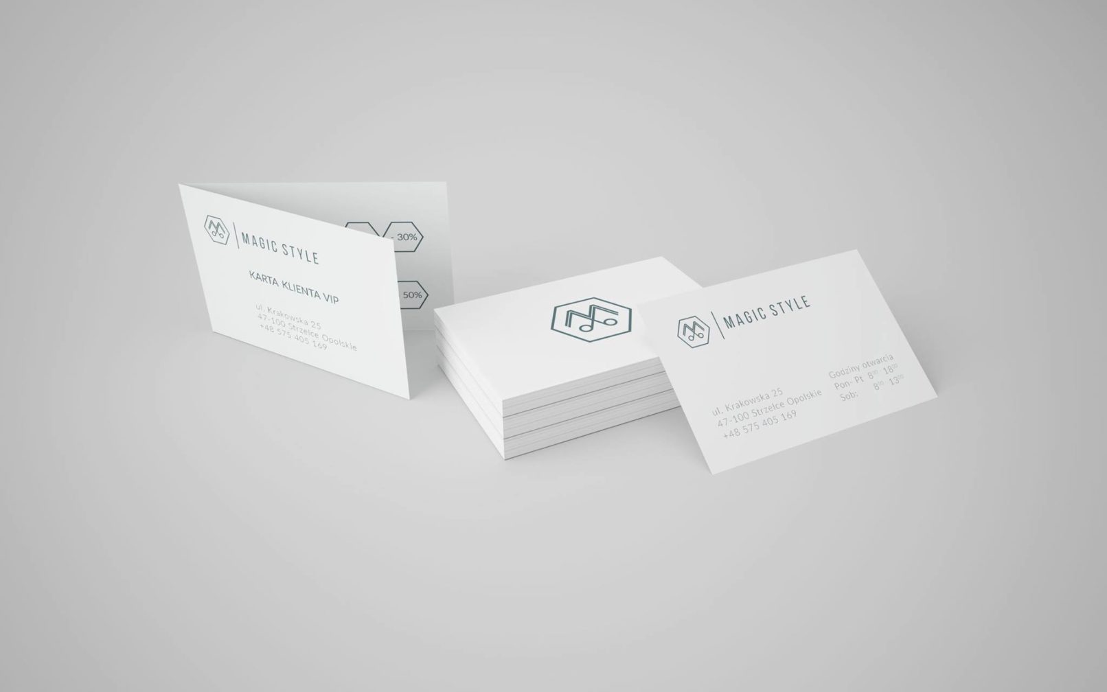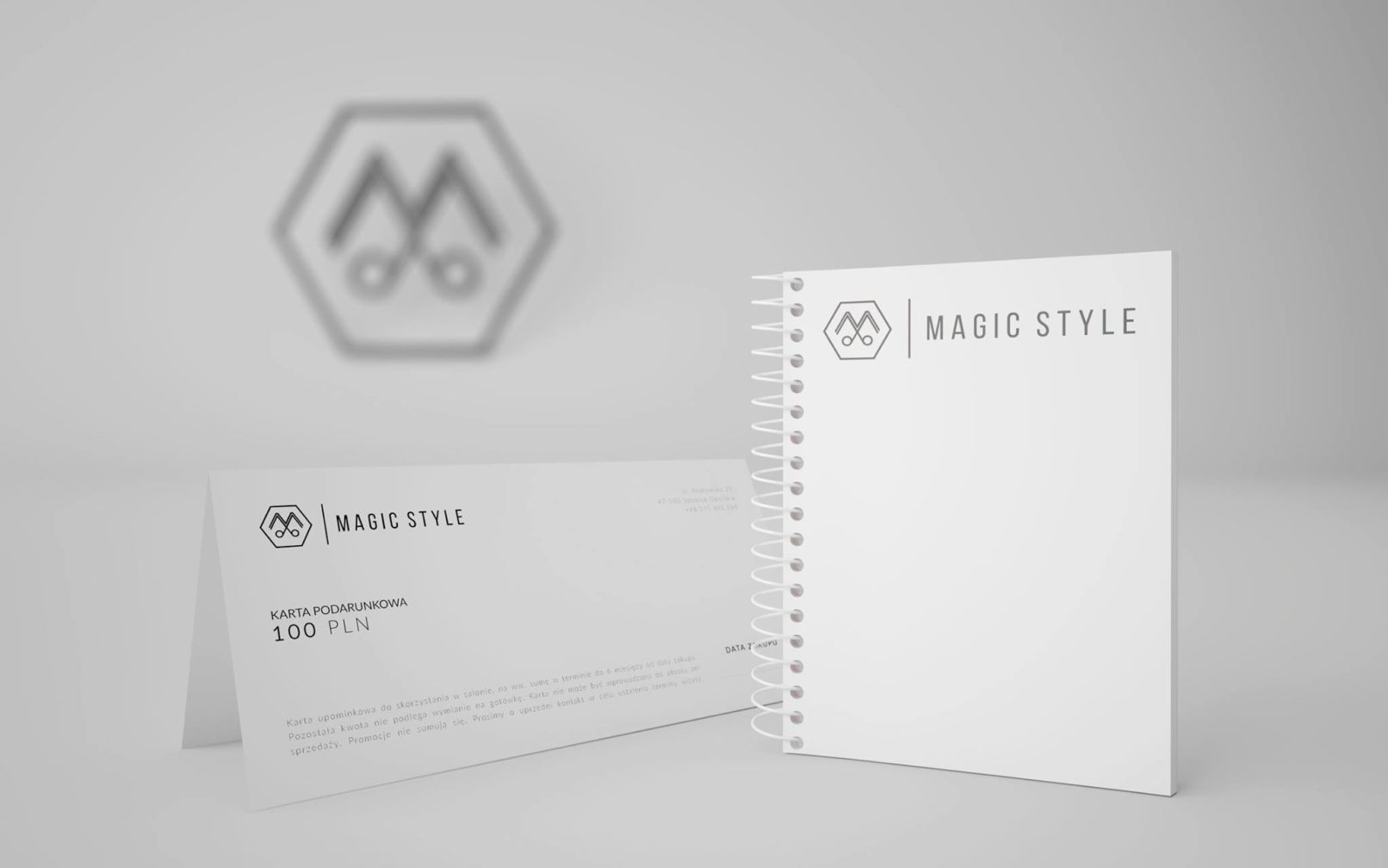 Logo składa się z sygnetu oraz części literniczej, którą stanowi napis “Magic style”. Sygnet w swojej formie nawiązuje do inicjałów założycielek salonu oraz motywu nożyczek. Wszystko to zamknięte jest w sześciokącie foremnym.